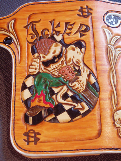 上質なナチュラルサドルレザーにオリジナルロゴカービングを施し